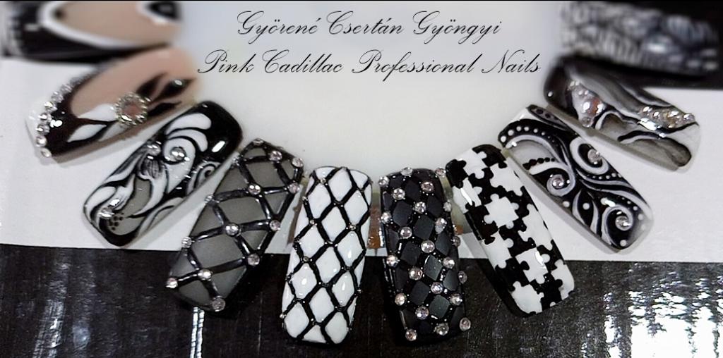 Black and white nail art - Kombinált műköröm díszítés