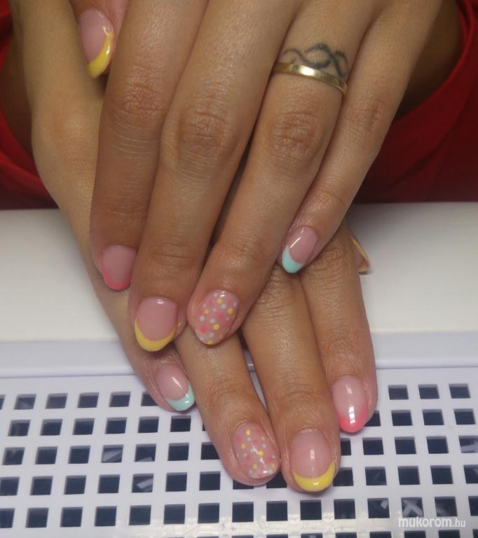 A fent látható "színes francia" elnevezésű műköröm minta Bukta Péterné, Tiszaújvárosi műkörmös munkája. A kép 2017-05-29 13:16:26-kor került feltöltésre a Gél Lakk kategóriába sorolva, mely immáron 16634 db Elite körömszalon által feltöltött köröm mintát tartalmaz. A kategóriában szereplő további műköröm minták megtekinthetőek a mukorom.hu weboldalon.