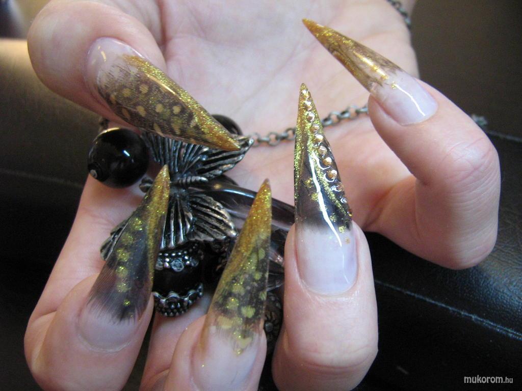 A fent látható "Stilettó madártollal" elnevezésű műköröm minta Derda Veronika, Érdi műkörmös munkája. A kép 2011-02-26 23:22:57-kor került feltöltésre a Zselés műköröm képek kategóriába sorolva, mely immáron 40450 db Elite körömszalon által feltöltött köröm mintát tartalmaz. A kategóriában szereplő további műköröm minták megtekinthetőek a mukorom.hu weboldalon.