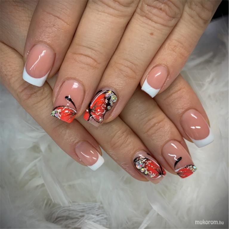 A fent látható "Francia műköröm pillangóval" elnevezésű műköröm minta Kiss Adrienn, Budapest 21. ker.i műkörmös munkája. A kép 2019-10-03 16:23:45-kor került feltöltésre a Zselés műköröm képek kategóriába sorolva, mely immáron 40450 db Elite körömszalon által feltöltött köröm mintát tartalmaz. A kategóriában szereplő további műköröm minták megtekinthetőek a mukorom.hu weboldalon.