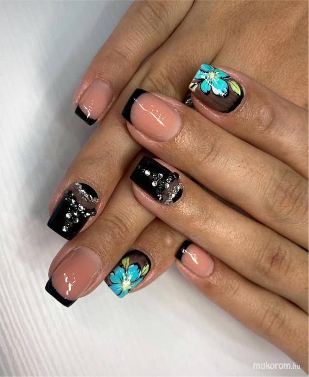Fekete viragos - Zselés műköröm képek