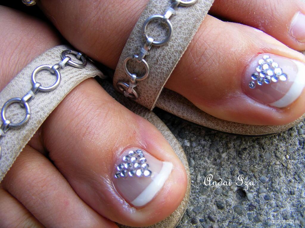 A fent látható "pedi" elnevezésű műköröm minta Andai Izabella, Hatvani műkörmös munkája. A kép 2011-07-05 23:09:23-kor került feltöltésre a Lábköröm díszítés kategóriába sorolva, mely immáron 884 db Elite körömszalon által feltöltött köröm mintát tartalmaz. A kategóriában szereplő további műköröm minták megtekinthetőek a mukorom.hu weboldalon.