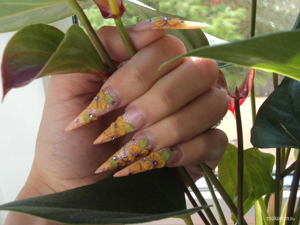 Saját porci és akril díszítéses stiletto - Kombinált műköröm díszítés