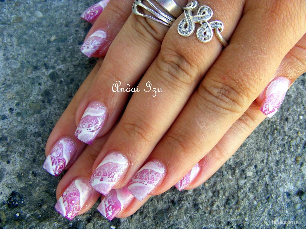 A fent látható "Barbi" elnevezésű műköröm minta Andai Izabella, Hatvani műkörmös munkája. A kép 2011-07-16 18:22:48-kor került feltöltésre a Kombinált műköröm díszítés kategóriába sorolva, mely immáron 4590 db Elite körömszalon által feltöltött köröm mintát tartalmaz. A kategóriában szereplő további műköröm minták megtekinthetőek a mukorom.hu weboldalon.