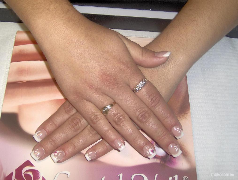 A fent látható "Francia káh pici virággal" elnevezésű műköröm minta Vadi Barbara Perla Szépségszalon, Sarkadi műkörmös munkája. A kép 2011-10-13 19:52:05-kor került feltöltésre a Akril körömdíszítés kategóriába sorolva, mely immáron 5330 db Elite körömszalon által feltöltött köröm mintát tartalmaz. A kategóriában szereplő további műköröm minták megtekinthetőek a mukorom.hu weboldalon.