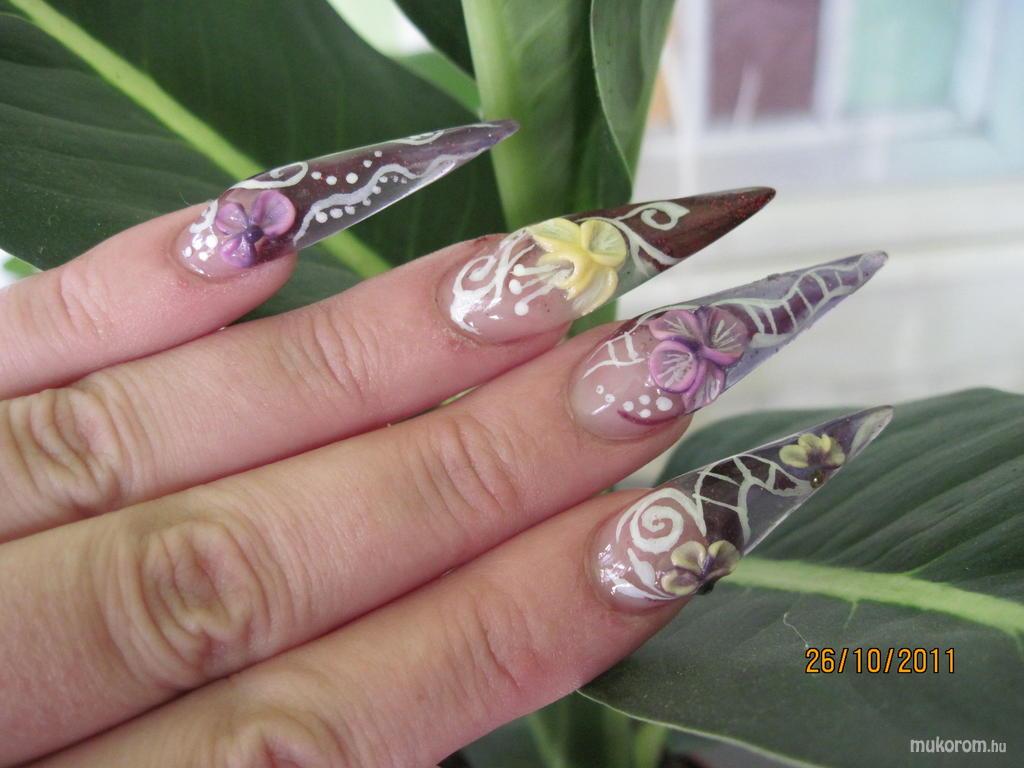 A fent látható "Szylvi" elnevezésű műköröm minta Brezsán Szylvia, Dunaharasztii műkörmös munkája. A kép 2011-10-26 10:55:21-kor került feltöltésre a Zselés műköröm képek kategóriába sorolva, mely immáron 40450 db Elite körömszalon által feltöltött köröm mintát tartalmaz. A kategóriában szereplő további műköröm minták megtekinthetőek a mukorom.hu weboldalon.