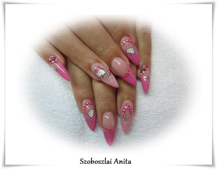 A fent látható "Hello Kitty" elnevezésű műköröm minta Szoboszlai Anita, Halászteleki műkörmös munkája. A kép 2011-11-01 06:55:46-kor került feltöltésre a Zselés műköröm képek kategóriába sorolva, mely immáron 40450 db Elite körömszalon által feltöltött köröm mintát tartalmaz. A kategóriában szereplő további műköröm minták megtekinthetőek a mukorom.hu weboldalon.