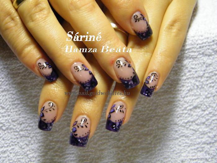 A fent látható "lila kagylólapos kisvirággal" elnevezésű műköröm minta Sáriné Hamza Beáta (Baross Beauty Szalon), Budapest 20. ker.i műkörmös munkája. A kép 2011-11-01 17:54:38-kor került feltöltésre a Zselés műköröm képek kategóriába sorolva, mely immáron 40450 db Elite körömszalon által feltöltött köröm mintát tartalmaz. A kategóriában szereplő további műköröm minták megtekinthetőek a mukorom.hu weboldalon.