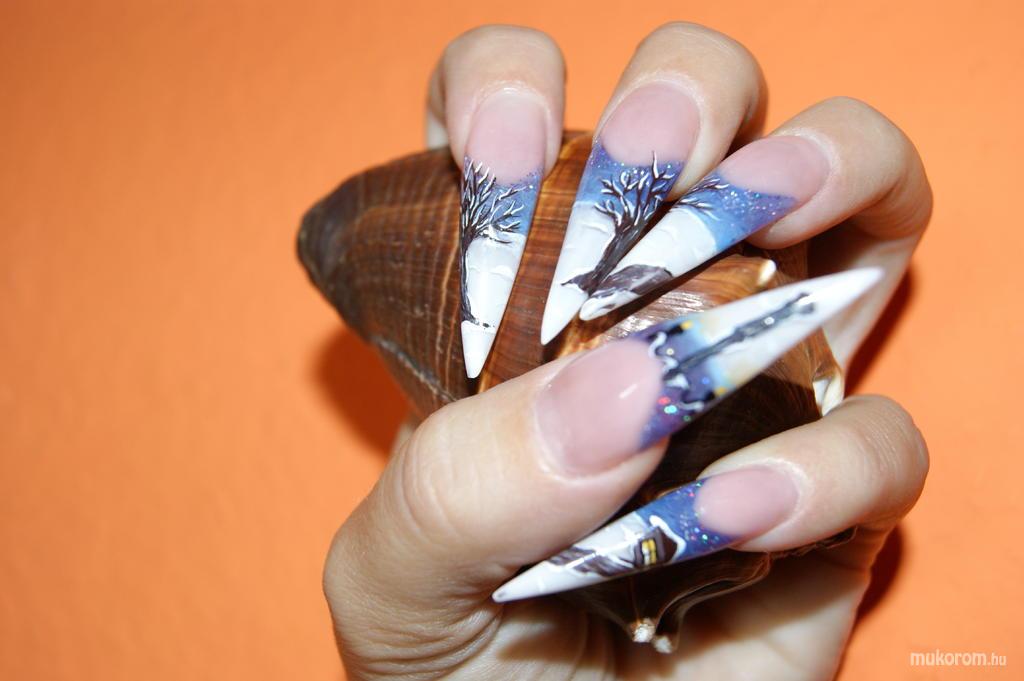 A fent látható "tél " elnevezésű műköröm minta Barti Viktória, Budapest 21. ker.i műkörmös munkája. A kép 2011-11-16 22:24:12-kor került feltöltésre a Porcelán műköröm minták kategóriába sorolva, mely immáron 5706 db Elite körömszalon által feltöltött köröm mintát tartalmaz. A kategóriában szereplő további műköröm minták megtekinthetőek a mukorom.hu weboldalon.